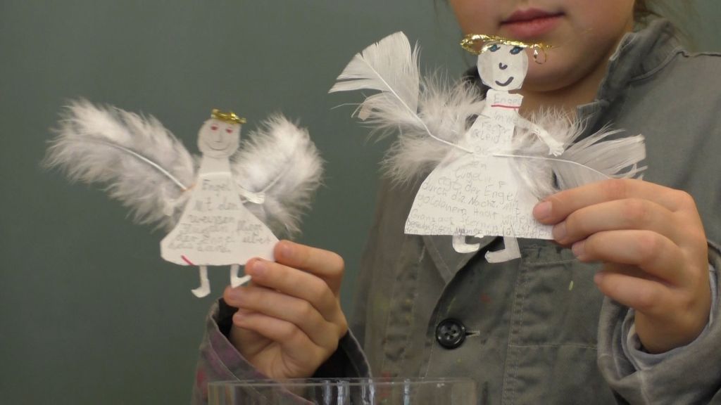 chüler der Stufe 4 der Grundschule Wilhelmsdorf und der Stufe 5 des Hör- und Sprachheilzentrums experimentieren mit eigenen Texten zu Engeln mit Wasser, Papier, Feuer, Video, Tinte und Theater.